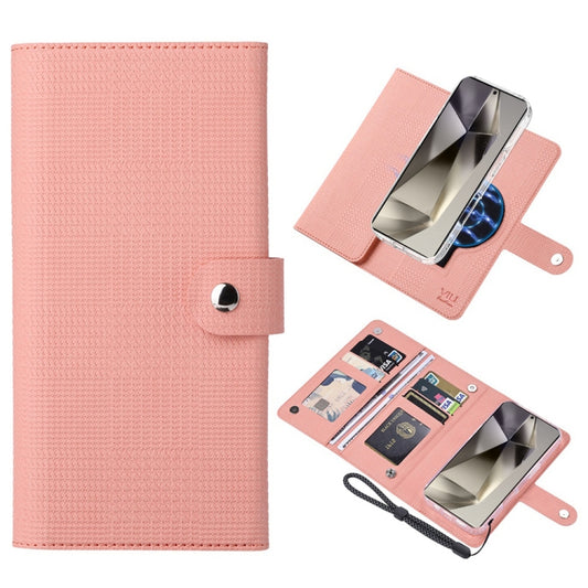 For Samsung Galaxy S24 Ultra 5G Fierre Shann Crazy Horse Card Holder Back Cover PU Phone Case(Pink)