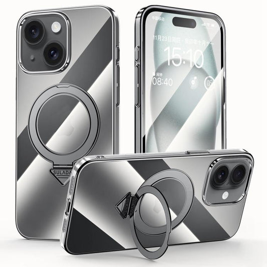 For iPhone 15 kalebol Metal 360 Degree Rotation Holder MagSafe Phone Case(Black)