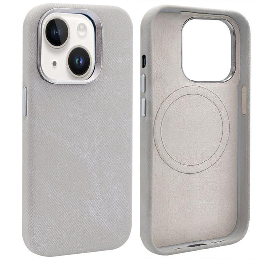 For iPhone 15 VIETAO Retro Denim Texture PU Leather MagSafe Phone Case(Silver Grey)