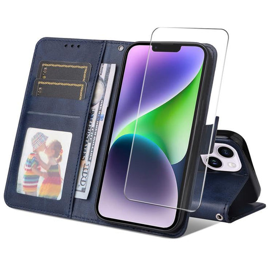 For iPhone 15 ENKAY Card Wallet Calf Texture Leather Phone Case with Thickened Glue No White Edge Film(Blue)