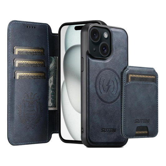 For iPhone 15 Suteni G5 Litchi Leather Magnetic MagSafe Phone Case(Brown)