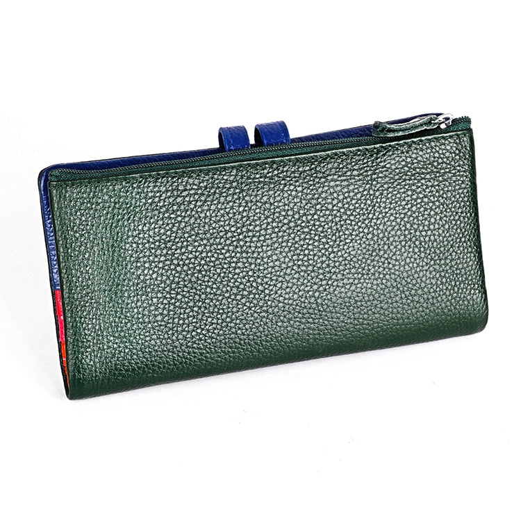 3572 Litchi Texture Leather Zipper Lady Wallet Large-capacity Purse(Dark Green)