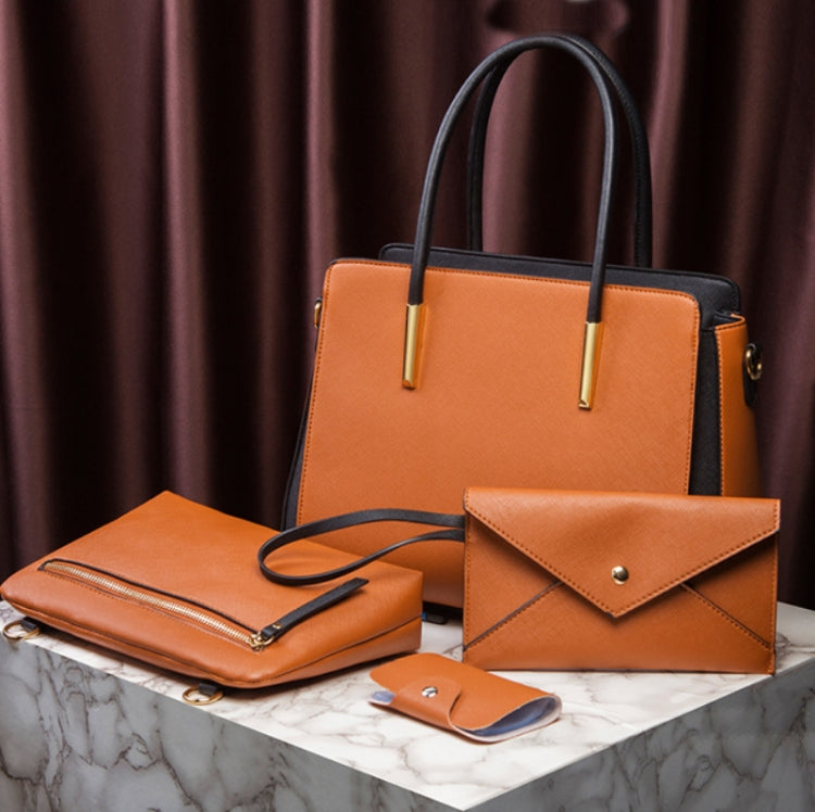 4 In 1 Fashion Color-Block Messenger Handbag Large-Capacity Bag(Brown)