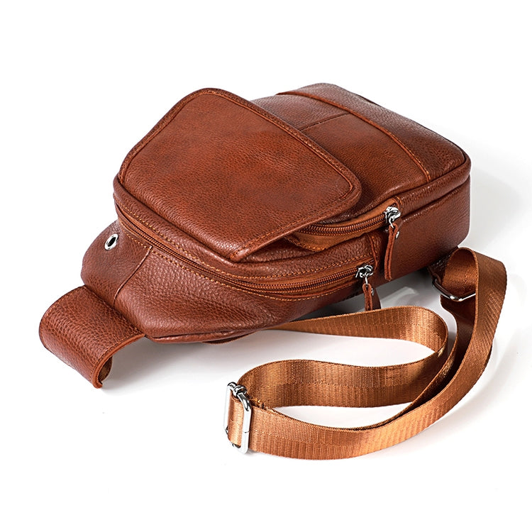 6023 Casual Litchi Texture Soft Face Full-grain Cowhide One Shoulder Crossbody Bag for Men(Brown)