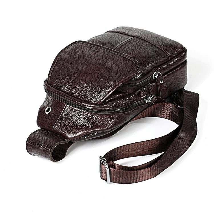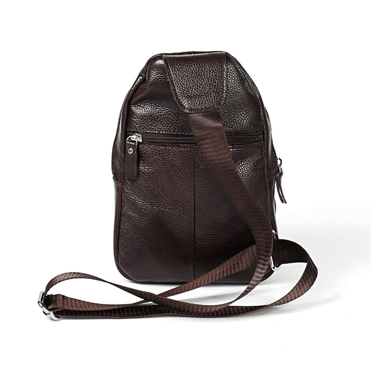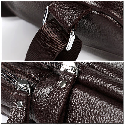 6023 Casual Litchi Texture Soft Face Full-grain Cowhide One Shoulder Crossbody Bag for Men(Coffee)