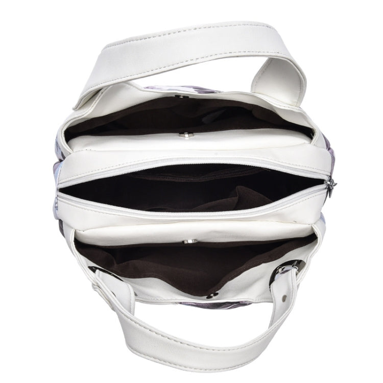 722 Women Soft Leather Handbag(White Handle Gray Flower)