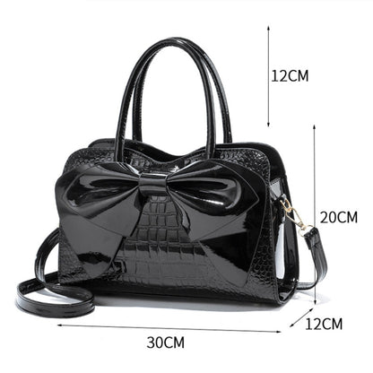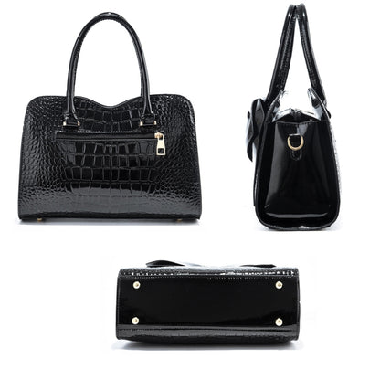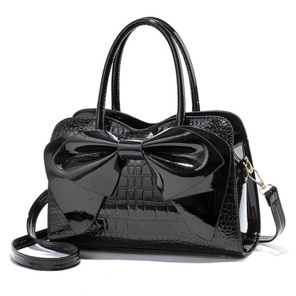 8111 Bow Bright Leather Ladies Handbag(Black)