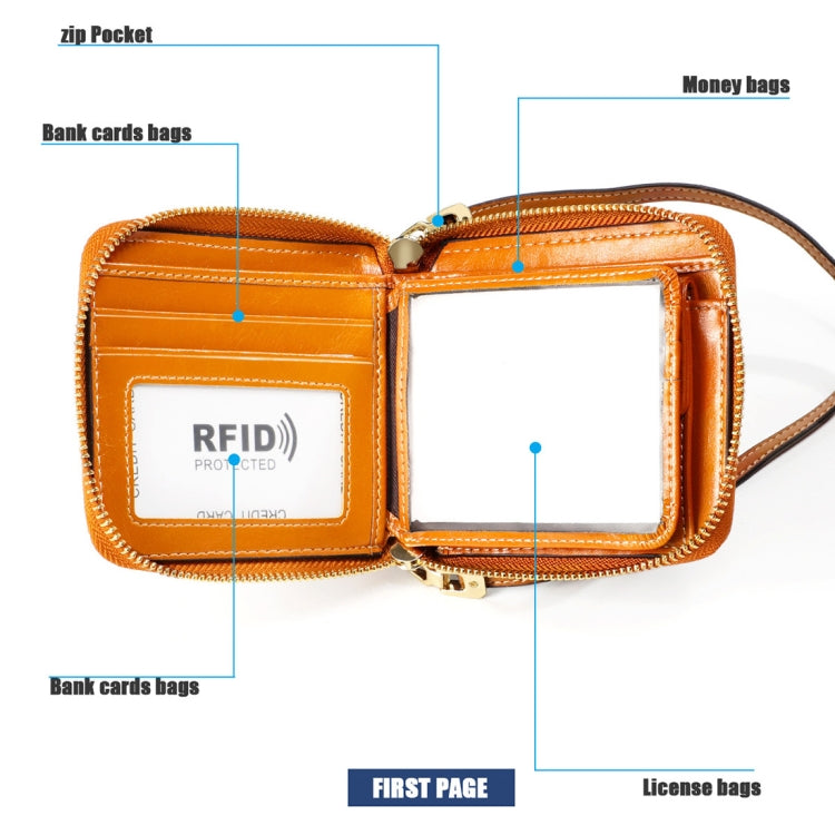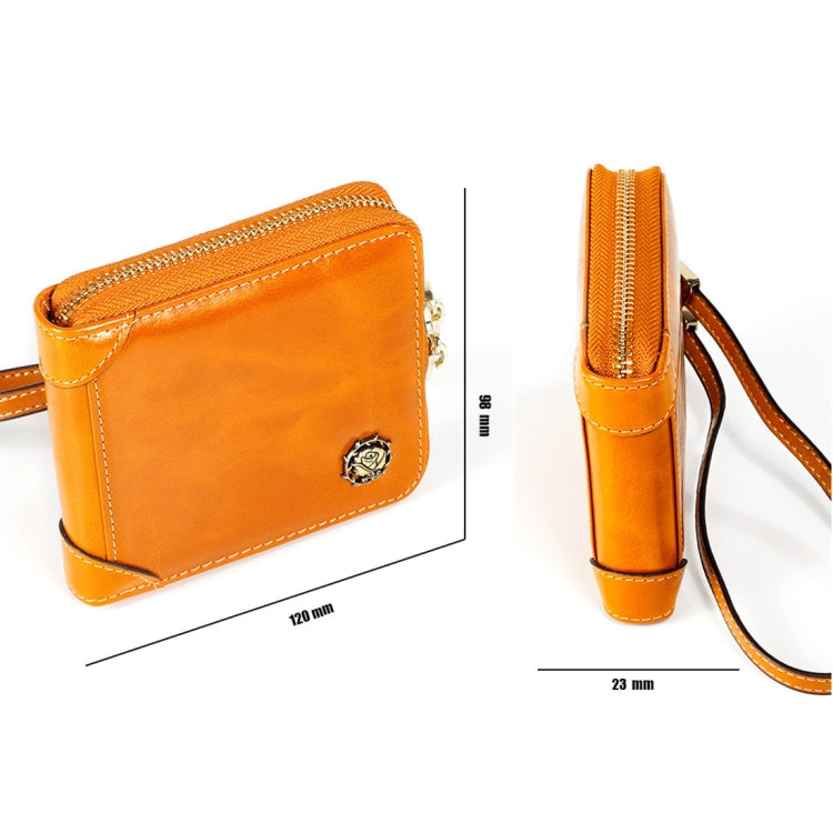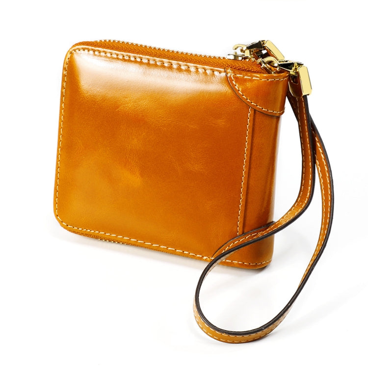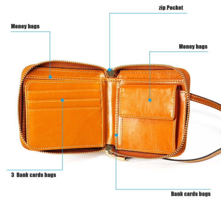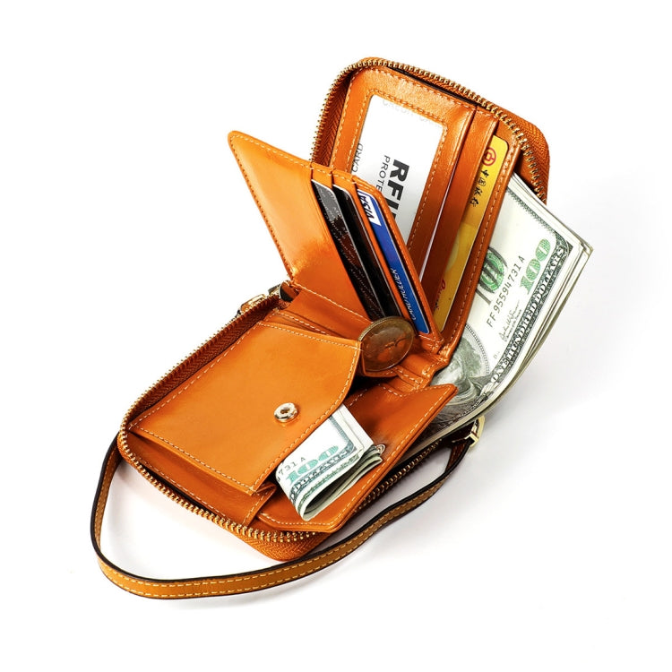 8251 Antimagnetic RFID Multi-function Oil Wax Leather Lady Zipper Wallet Purse with Lanyard(Yellow)
