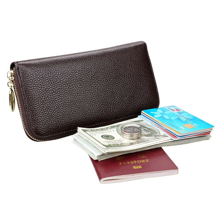 906 Antimagnetic RFID Litchi Texture Women Large Capacity Hand Wallet Purse Phone Bag with Card Slots(Coffee)