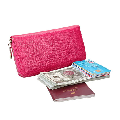 906 Antimagnetic RFID Litchi Texture Women Large Capacity Hand Wallet Purse Phone Bag with Card Slots(Rose Red)