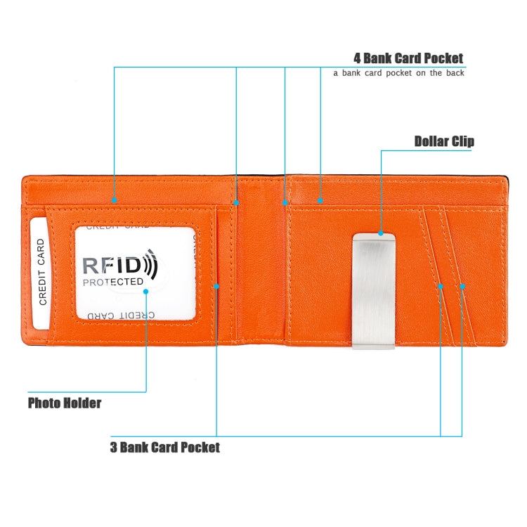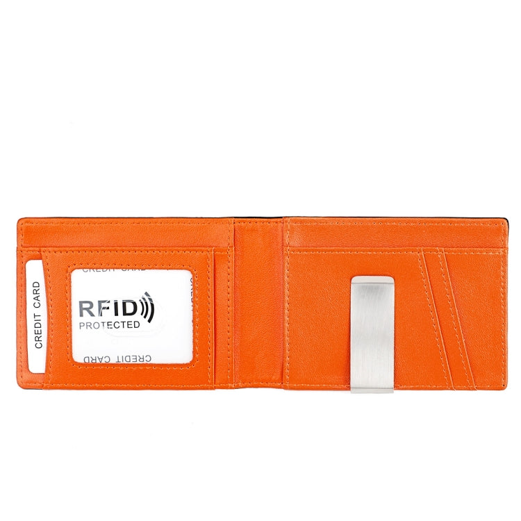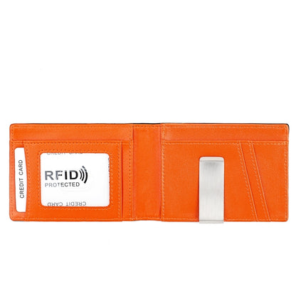 9651 Ultra-thin Two-fold RFID Anti-theft Genuine Leather Wallet For Men and Women(Orange)