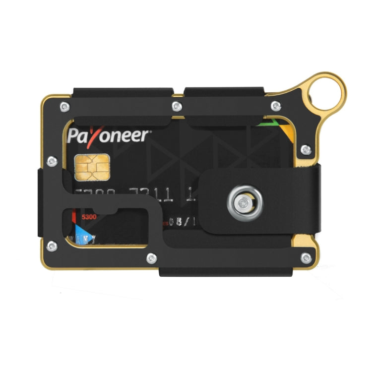 Aluminum Alloy Card Holder Leather Wallet Multifunctional Adjustable Snap Button Pocket Wallet(Black)