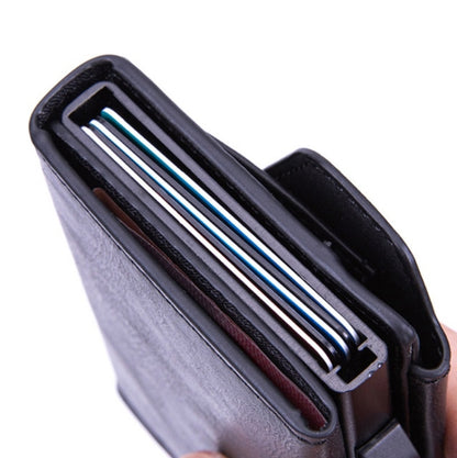 Anti-Theft Aluminum Alloy Coin Purse RFID Anti-Degaussing Automatic Pop-Up PU Bank Card Bag(Mad Horse Blue)