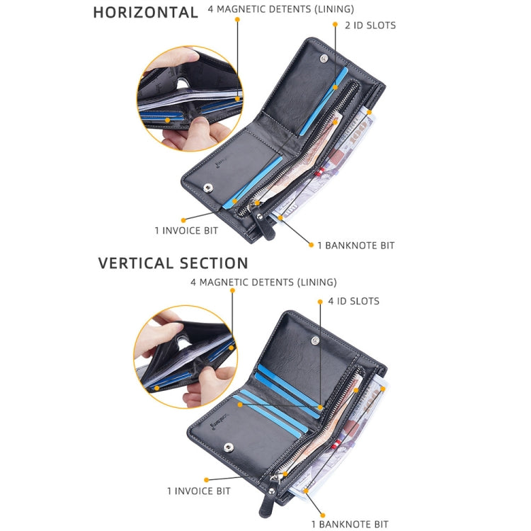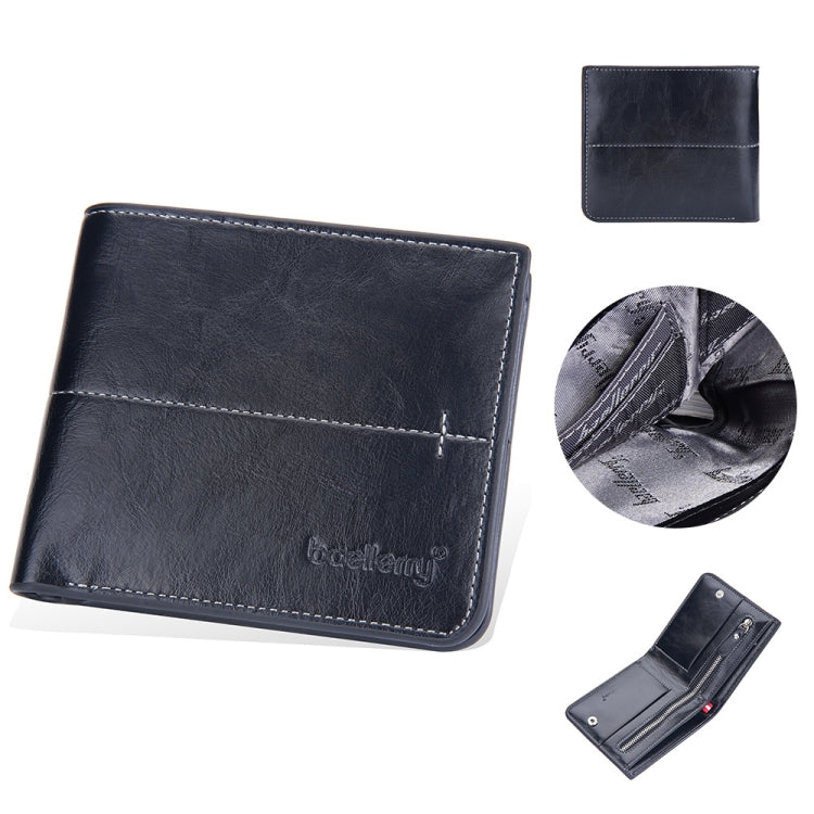 Baellerry Men Short Vintage Multi-Card Wallet Vertical Buckle Zip Wallet(Black Horizontal)