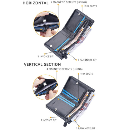 Baellerry Men Short Vintage Multi-Card Wallet Vertical Buckle Zip Wallet(Brown Horizontal)