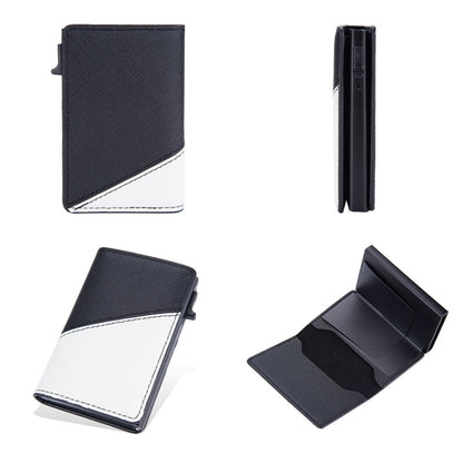 Baellerry RFID Anti-theft Aluminum Box Leather Wallet Side Push Contrasting Antimagnetic Card Holder(Blue)