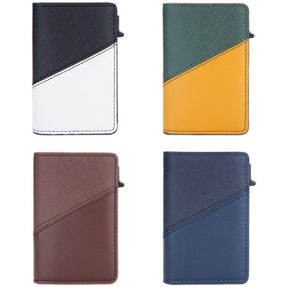 Baellerry RFID Anti-theft Aluminum Box Leather Wallet Side Push Contrasting Antimagnetic Card Holder(Coffee)