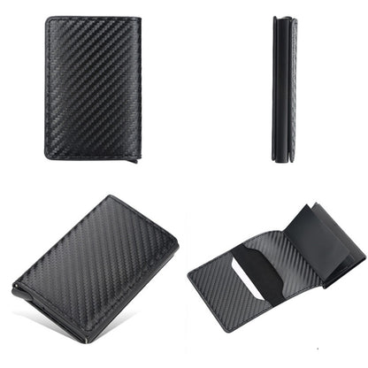 Baellerry RFID Anti-theft Plaid Leather Wallet Metal Aluminum Box Automatic Eject Type Card Holder(Black)
