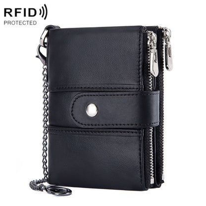 BP804 RFID Anti-Theft Wallet Multi-Function Buckle Zipper Retro Leisure Coin Purse(Black)