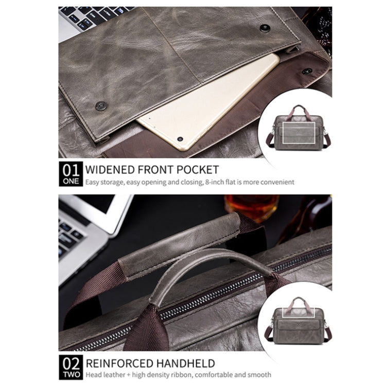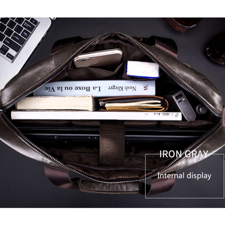 BULL CAPTAIN 046 Men Leather Briefcase First-Layer Cowhide Computer Handbag(Iron Gray)