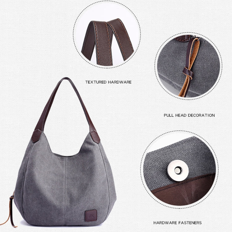 Canvas Bag Simple Wild Lady Retro Art Casual Bag Single Shoulder Bag(Lake Blue )