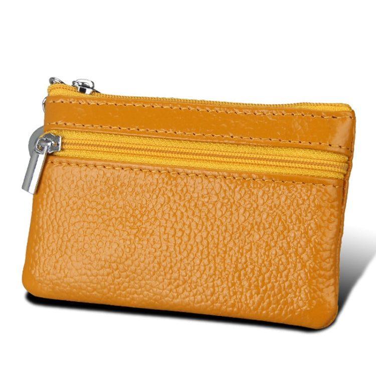Cowhide Leather Zipper Solid Color Horizontal Card Holder Wallet RFID Blocking Coin Purse Card Bag Protect Case, Size: 11.4*7.4cm(Yellow)