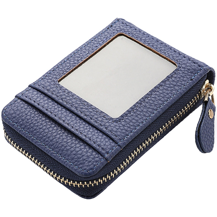 DEABOLAR Large-capacity Multi-slot Short Organ Card Holder PU Leather ID Cover Zipper Coin Purse(Blue)