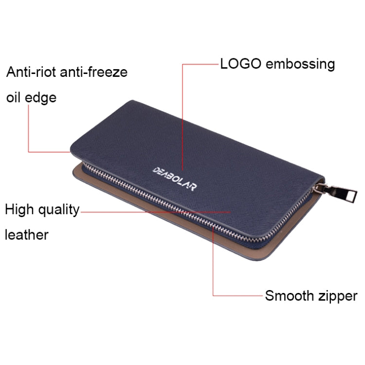 DEABOLAR Long Saffiano Leather Wallet Large Capacity Multi-compartment Zip Clutch(Blue)