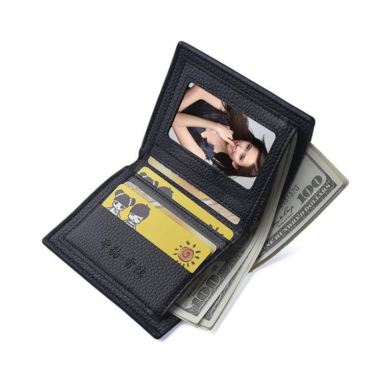 DEABOLAR Men PU Leather Short Wallet Zipper Coin Purse Card Holder(Black Vertical)