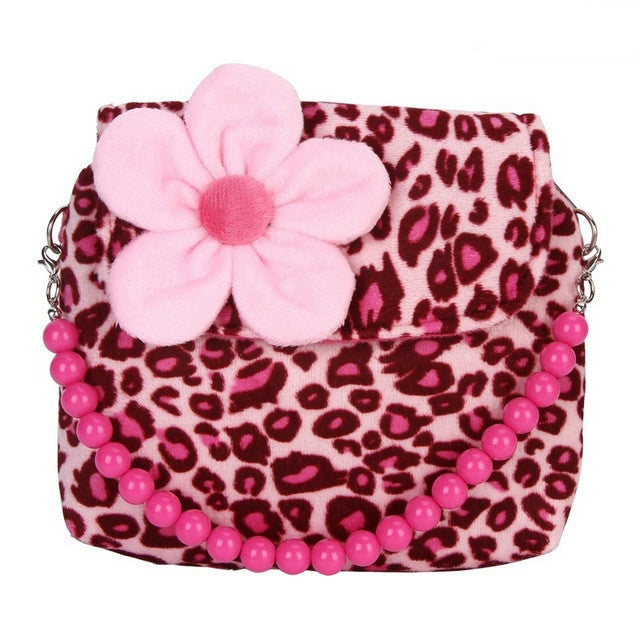 Fashion Shoulder Bag Children Girls Princess Flower Messenger Handbag Lovely Purses(Rose red leopard)