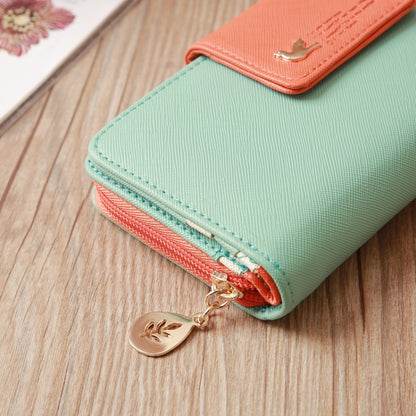Flying Bird Two Fold Wallet Lady Long Wallet Zipper Mobile Phone Bag Large Capacity Card Holder(Pink)