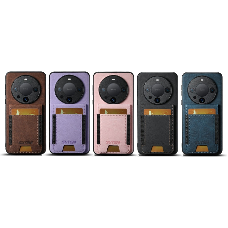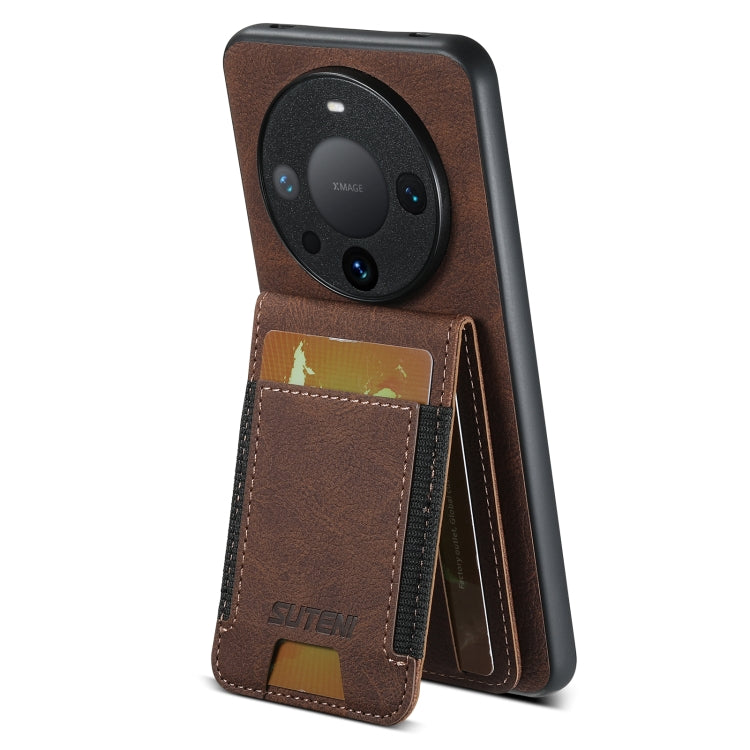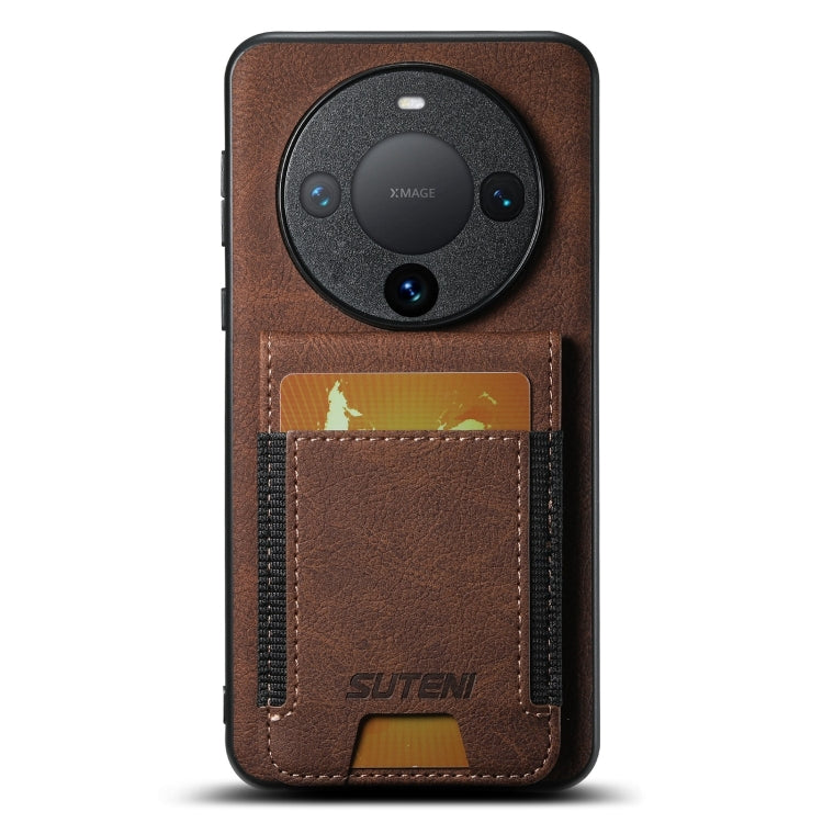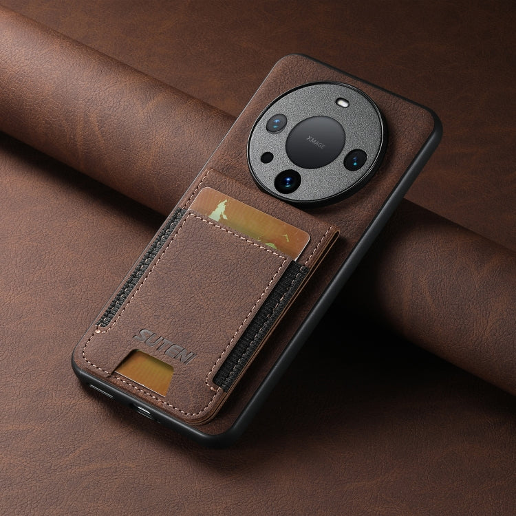 For Huawei Mate 60 Pro Suteni H03 Litchi Leather Card Bag Stand Back Phone Case(Brown)