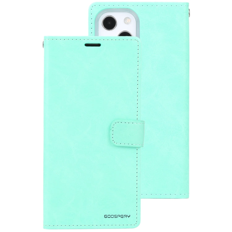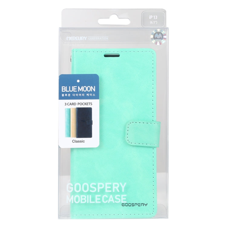 For iPhone 13 GOOSPERY BLUE MOON Crazy Horse Texture Horizontal Flip Leather Case with Holder & Card Slot & Wallet(Mint Green)