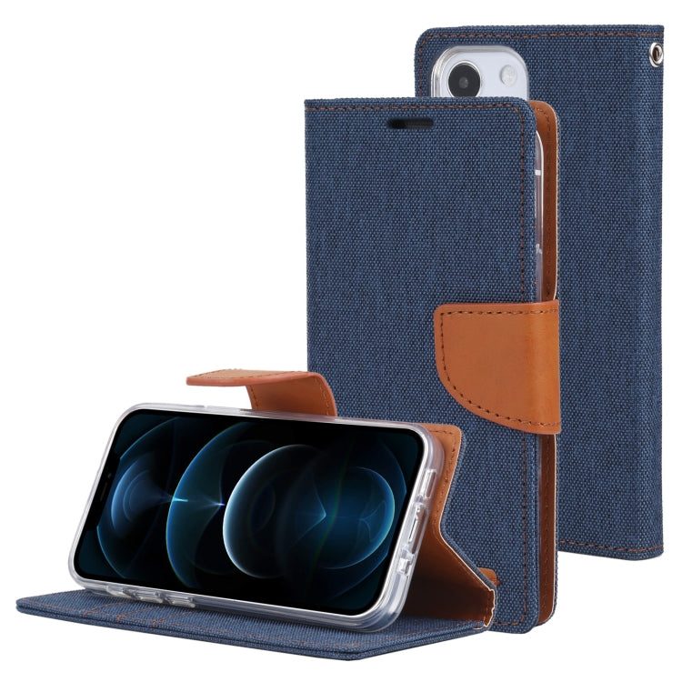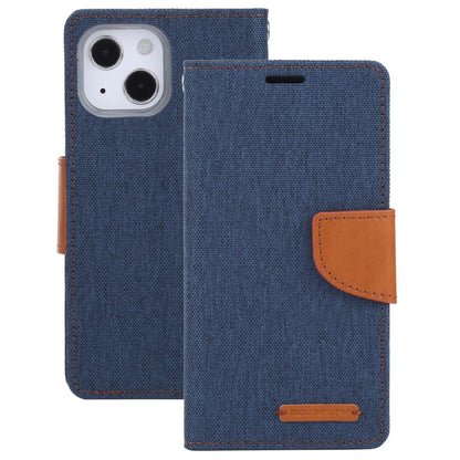 For iPhone 13 GOOSPERY CANVAS DIARY Canvas Texture Horizontal Flip PU Leather Case with Holder & Card Slots & Wallet(Navy Blue)