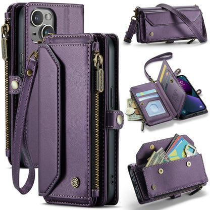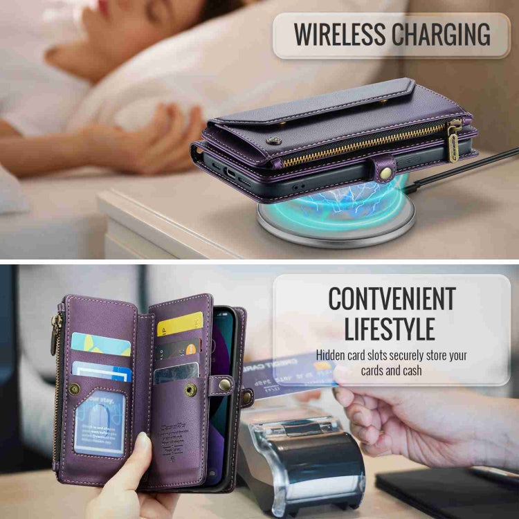 For iPhone 13 mini CaseMe C36 Card Slots Zipper Wallet RFID Anti-theft Leather Phone Case(Purple)