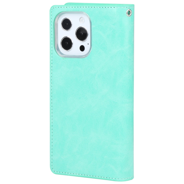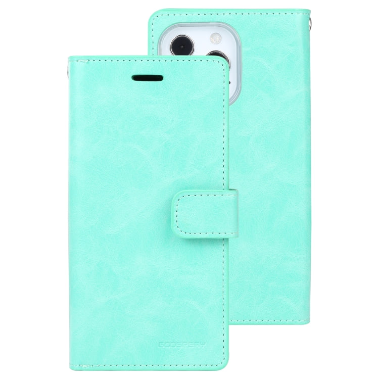 For iPhone 13 Pro GOOSPERY MANSOOR Crazy Horse Texture Horizontal Flip Leather Case with Holder & Card Slots & Wallet (Mint Green)