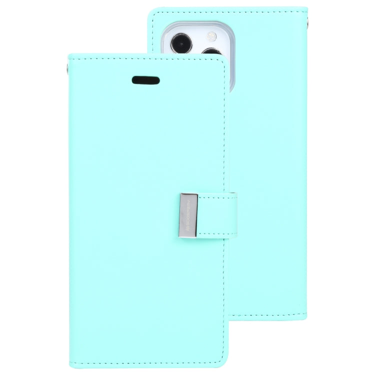 For iPhone 13 Pro GOOSPERY RICH DIARY Crazy Horse Texture Horizontal Flip Leather Case with Holder & Card Slots & Wallet (Mint Green)