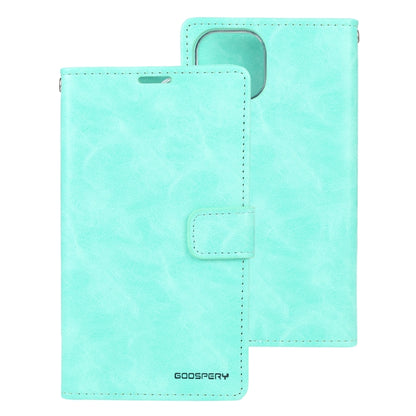 For iPhone 14 GOOSPERY BLUE MOON Crazy Horse Texture Leather Case (Mint Green)