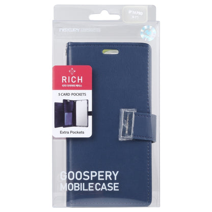 For iPhone 14 GOOSPERY RICH DIARY Crazy Horse Texture Leather Case (Blue)