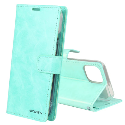 For iPhone 14 Plus GOOSPERY BLUE MOON Crazy Horse Texture Leather Case (Mint Green)