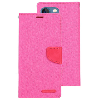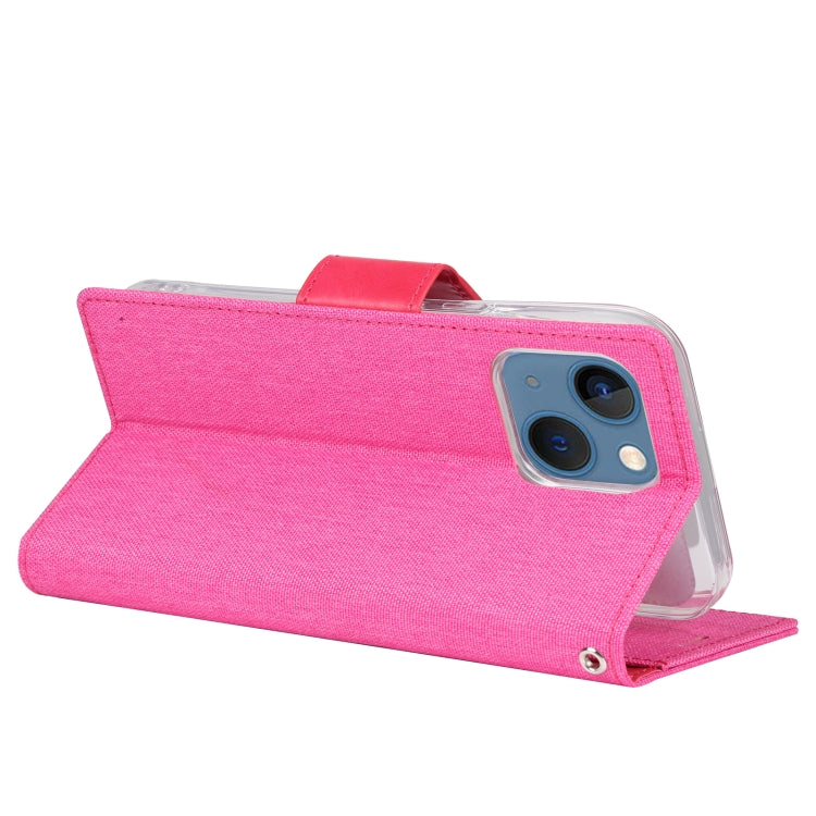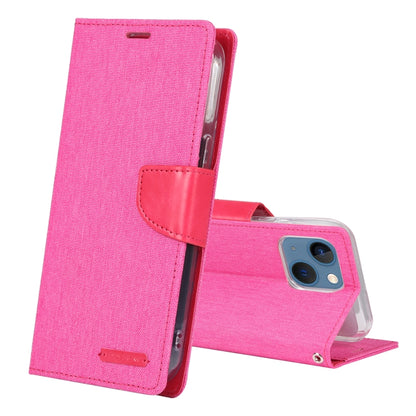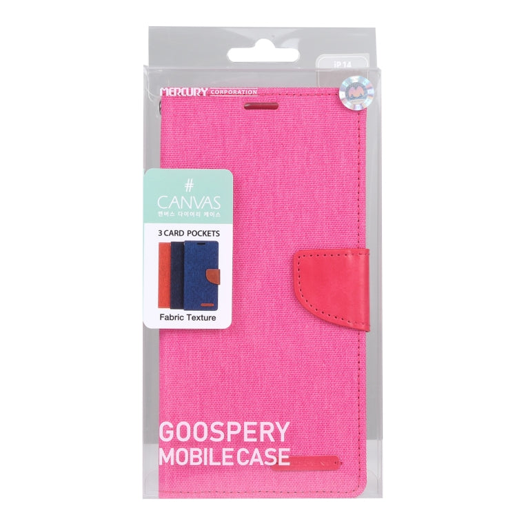 For iPhone 14 Plus GOOSPERY CANVAS DIARY Canvas Texture Flip Leather Phone Case (Rose Red)