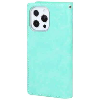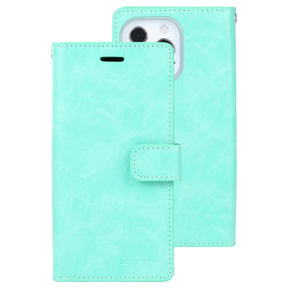 For iPhone 14 Pro MERCURY GOOSPERY MANSOOR 9 Card Slots Leather Case(Mint Green)