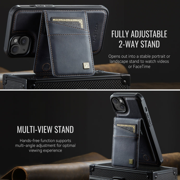 For iPhone 15 AutSpace A12 MagSafe Magnetic RFID Card Bag Phone Case(Black)
