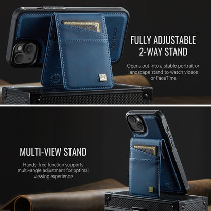 For iPhone 15 AutSpace A12 MagSafe Magnetic RFID Card Bag Phone Case(Blue)
