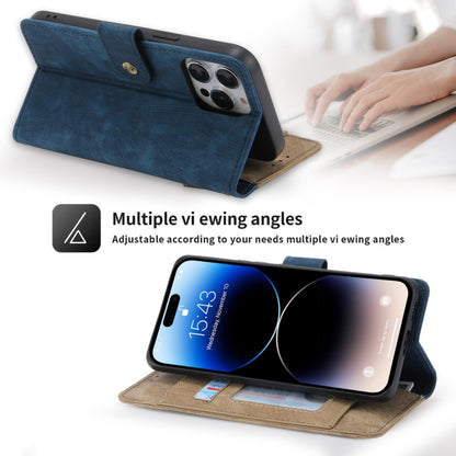 For iPhone 15 POLA Dual-color Zipper Wallet RFID Leather Phone Case(Yellow Blue)