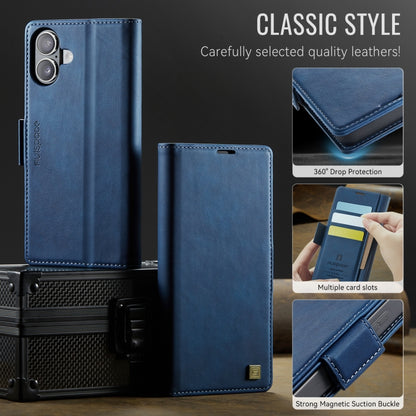 For iPhone 16 AutSpace A11 Side Buckle MagSafe Magnetic RFID Phone Leather Case(Blue)
