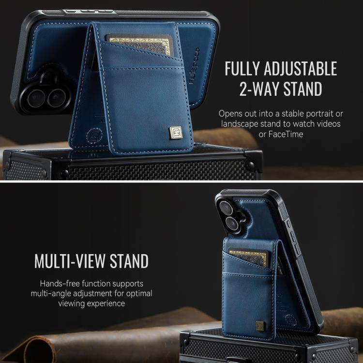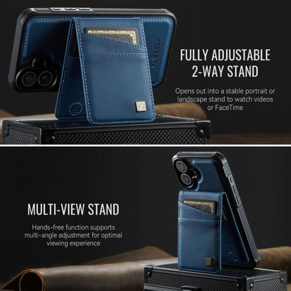 For iPhone 16 AutSpace A12 MagSafe Magnetic RFID Card Bag Phone Case(Blue)