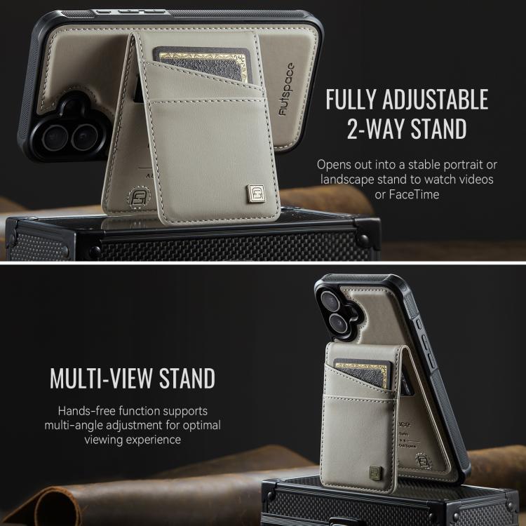 For iPhone 16 AutSpace A12 MagSafe Magnetic RFID Card Bag Phone Case(Khaki)