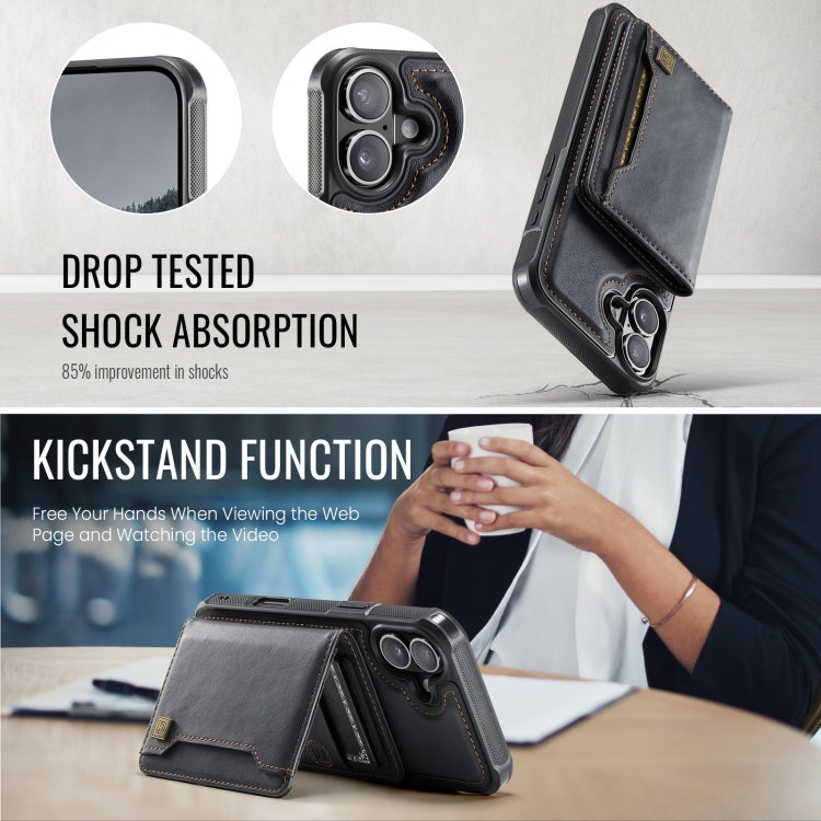For iPhone 16 AutSpace A13 MagSafe Magnetic RFID Flip Card Bag Phone Case(Black)