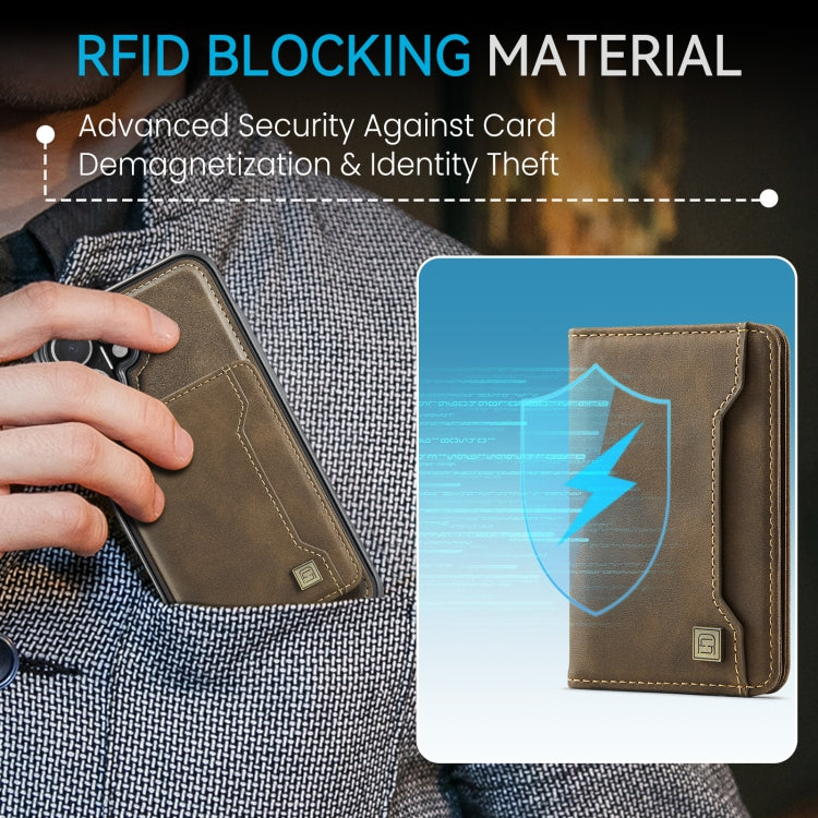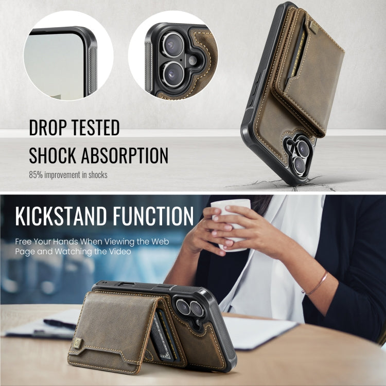For iPhone 16 AutSpace A13 MagSafe Magnetic RFID Flip Card Bag Phone Case(Coffee)